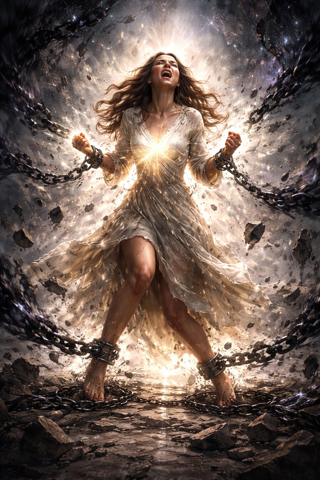 O que foi mais impactante não foi a cena da vida passada, mas o que aconteceu no sutil durante a sessão. Enquanto eu sustentava o campo entrou uma luz que começou a "derreter" as correntes de ferro etérico que prendiam os pés dela. Foi um momento de tensão máxima, porque a alma dela tinha medo de soltar o peso; ela achava que o peso era o que a mantinha no chão. Eu precisei olhar nos olhos dela (no campo sutil) e dizer: "A tempestade de luz não veio para te afogar, ela veio para te levar para a superfície. Solta a âncora ou a pressão vai te quebrar". Foi aí que ela desabou em um choro.